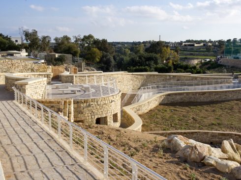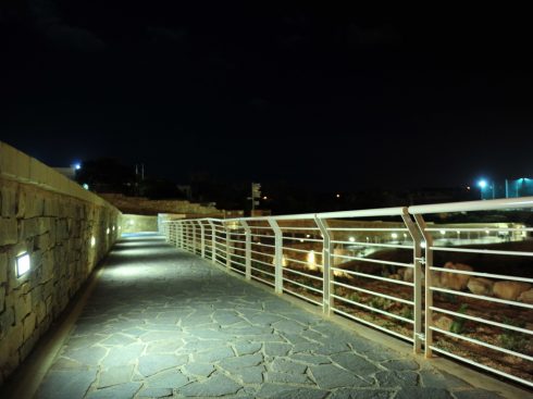 Works continued to cover the construction of pathways along the area in natural stone paving and cladding of the footpath walls in rubble stone. Schembri Barbros Ltd. was responsible for the soft landscaping of this area as well as the installation of a hard stone seating area.