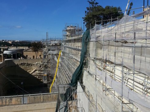 The project consists of restoration works to the faces, superior slope, platform terrace, passageways, external areas and elements of the above mentioned parts forming part of the Valletta Landfront Fortifications. The works include primarily the restoration of deteriorated masonry fabric, removal of cement‐based renders and pointing, stabilization of detached masonry facings, cleaning, and reinstatement/reconstruction of missing/ deteriorated sections of the masonry fabric and the stabilization of the rock face.